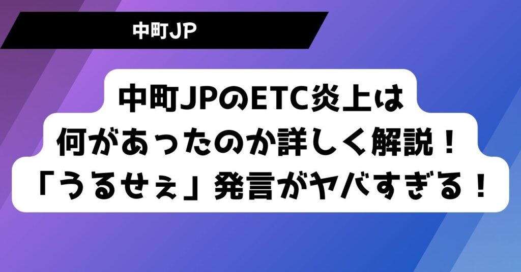 中町JPのETC炎上は何があったのか詳しく解説!「うるせぇ」発言がヤバすぎる!