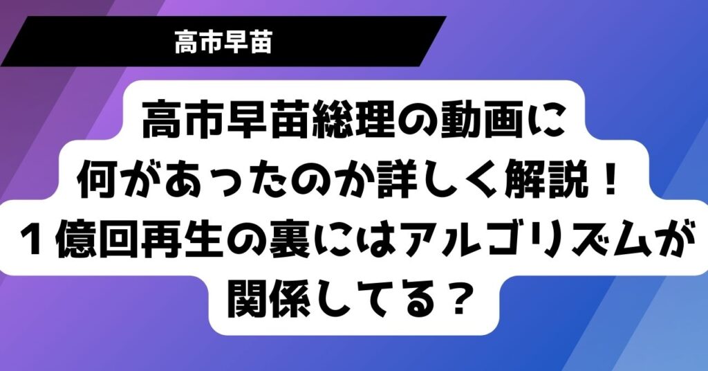 高市早苗総理の動画に何があったのか詳しく解説!1億回再生の裏にはアルゴリズムが関係してる?