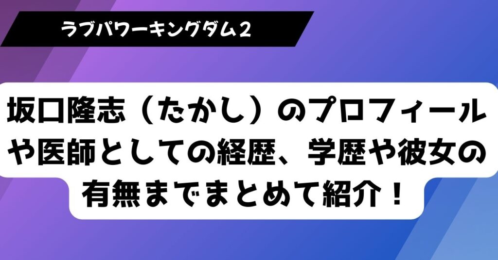 【ラブキン2】坂口隆志(たかし)のプロフィールや医師としての経歴、学歴や彼女の有無までまとめて紹介!