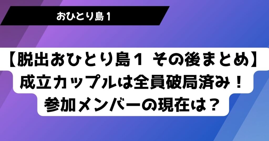 【脱出おひとり島1のその後まとめ】成立カップルは全員破局済み!参加メンバーの現在は?