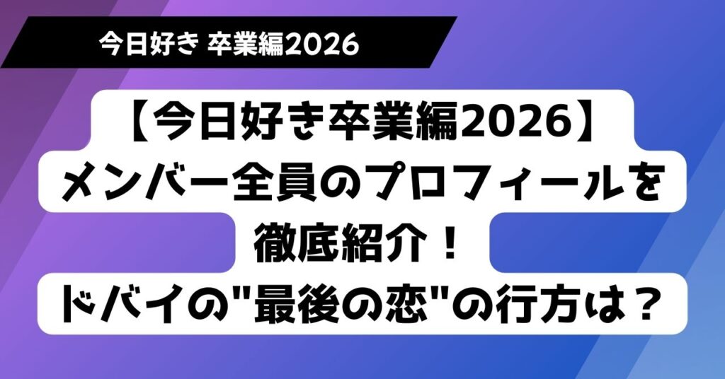 【今日好き卒業編2026】メンバー全員のプロフィールを徹底紹介!ドバイの”最後の恋”の行方は?