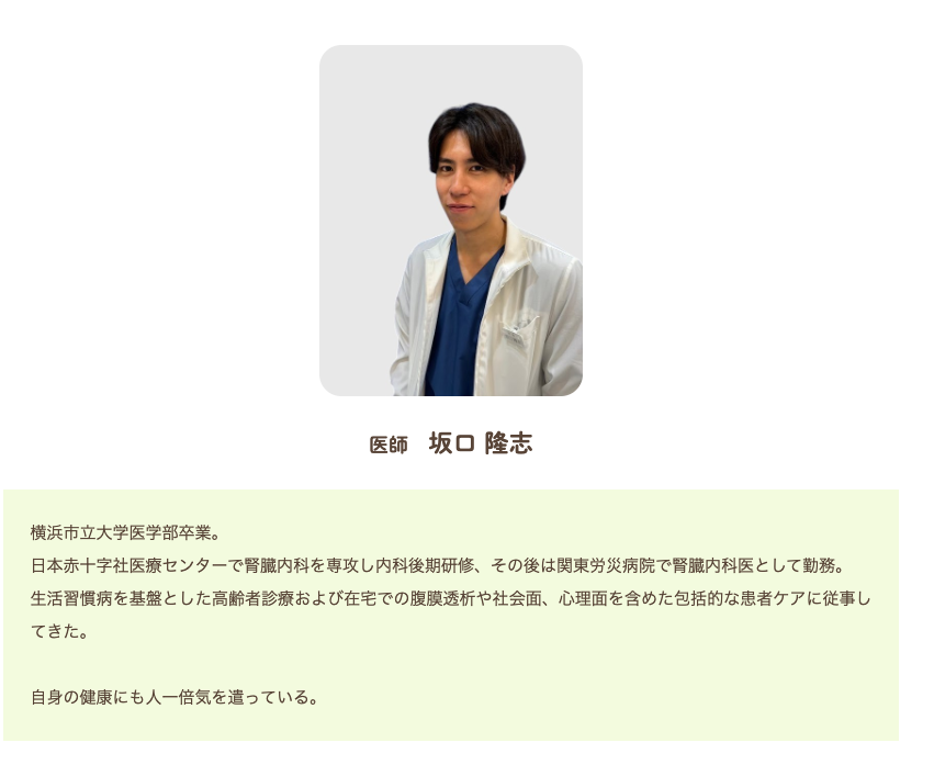 単に「内科医」というより、腎臓内科の領域で専門性を積んできた方なんですね。